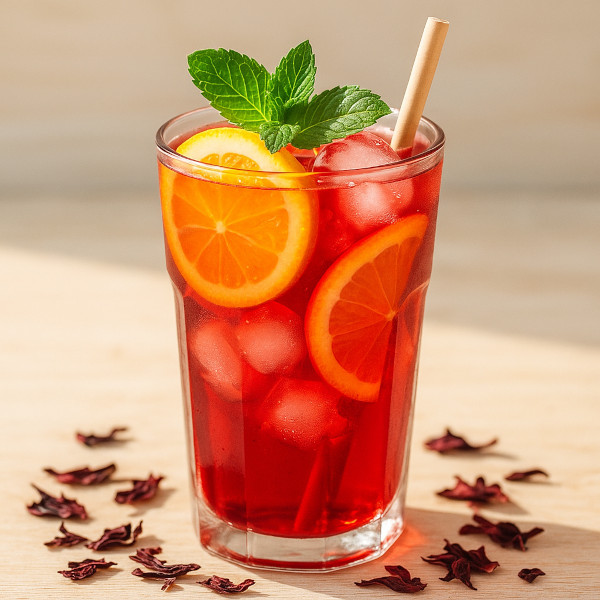 - 🧊 Κρύα λεμονάδα με ιβίσκο: Ζεστάνετε το έγχυμα, αφήστε το να κρυώσει και στη συνέχεια προσθέστε φέτες λεμονιού ή πορτοκαλιού, μερικά παγάκια, φρέσκα φύλλα μέντας και μια πρέζα σιρόπι αγαύης - καλοκαίρι σε ένα φλιτζάνι!