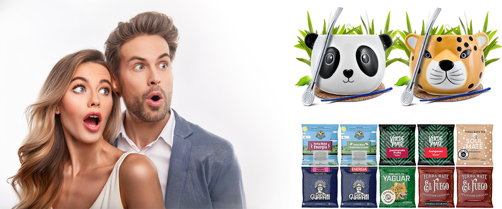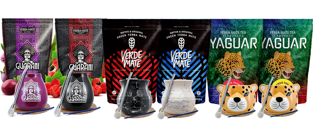 - 💛 Σετ με 10 δείγματα από διαφορετικές μάρκες - ένας πολύ καλός τρόπος για να εξερευνήσετε τους διαφορετικούς τύπους και γεύσεις του yerba mate. Το σετ περιλαμβάνει δύο πρωτότυπα κύπελλα mate σε σχήμα κεφαλιού πάντα και ιαγουάρου