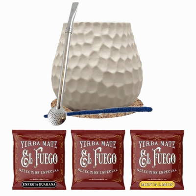 Σετ Yerba Mate για δύο άτομα: δείγματα El Fuego 3x50γρ + Καλαμπάς + 2x Bombilla