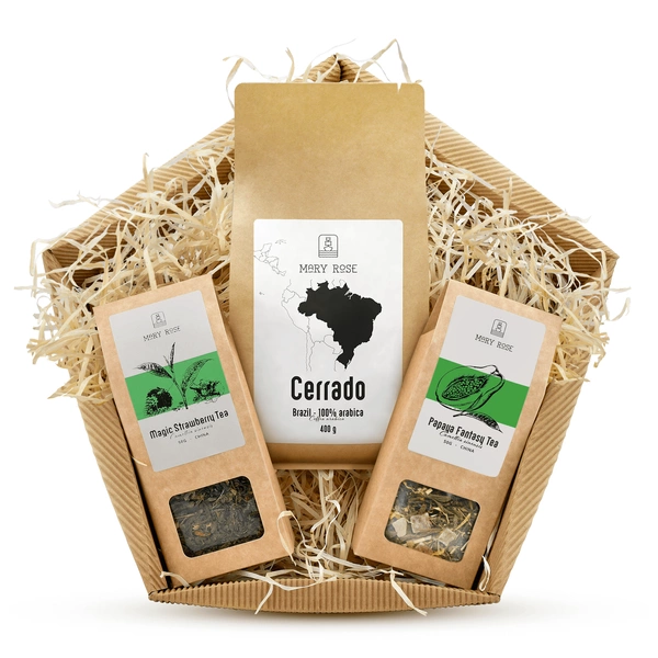 Πλησιάζουν τα Χριστούγεννα ή τα γενέθλια ενός αγαπημένου προσώπου; Θέλετε να κάνετε σε κάποιον ένα ξεχωριστό δώρο και δεν έχετε ιδέα τι να επιλέξετε; Ένα σετ τσαγιού είναι η τέλεια ιδέα για δώρο - για κάθε περίσταση! Το ειδικό σετ δώρου μας είναι μια επιλογή από δύο τσάγια Mary Rose και χειροποίητο, φρεσκοκαβουρδισμένο καφέ σε ολόκληρους κόκκους. Το σετ περιλαμβάνει επίσης ένα κομψό χαρτονένιο κουτί δώρου. Συνιστάται ανεπιφύλακτα!