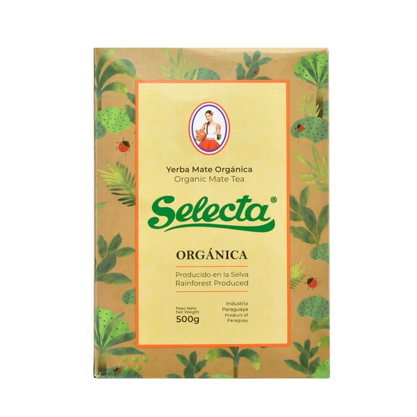 Selecta Orgánica - βιολογικό yerba mate χωρίς πρόσθετα. Η Selecta είναι μια μάρκα από την Παραγουάη με πολυετή εμπειρία στην παραγωγή yerba mate, με τη διάσημη εταιρεία EBSA πίσω από την παγκόσμια επιτυχία της. Το yerba mate συσκευάζεται σε δύο στρώματα - σε ένα κουτί από χαρτόνι, μέσα στο οποίο θα βρείτε μια σφραγισμένη σακούλα με αποξηραμένο mate. Αν και προέρχεται από την Παραγουάη, αποκλίνει ελαφρώς από τα πρότυπα της τυπικής χώρας του mate. Είναι αρκετά έντονο σε γεύση και άρωμα, αλλά οι καπνιστές πινελιές είναι ελάχιστα αισθητές εδώ.