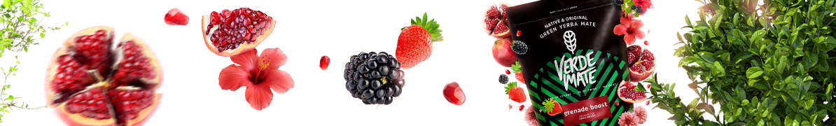 • Το Verde Mate Green Grenade Boost είναι ένας συνδυασμός έξω από αυτόν τον κόσμο. Οι σπόροι ροδιού και η γλυκιά φράουλα παίζουν το πρώτο βιολί, συνοδευόμενοι από acerola και τονωτικό guarana. Αυτό θα κάνει τις αισθήσεις σας να εκραγούν!