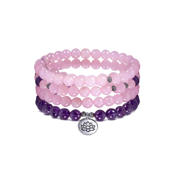 Βραχιόλι Mala με αμέθυστο και ροζ χαλαζία - Lotus Flower