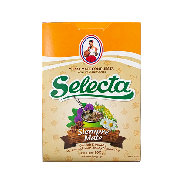 • Το Selecta Siempre Mate είναι ένα εκπληκτικά αρωματικό μείγμα από yerba mate και βότανα. Είναι ιδανικό για όσους αγαπούν τα αξέχαστα αρώματα.