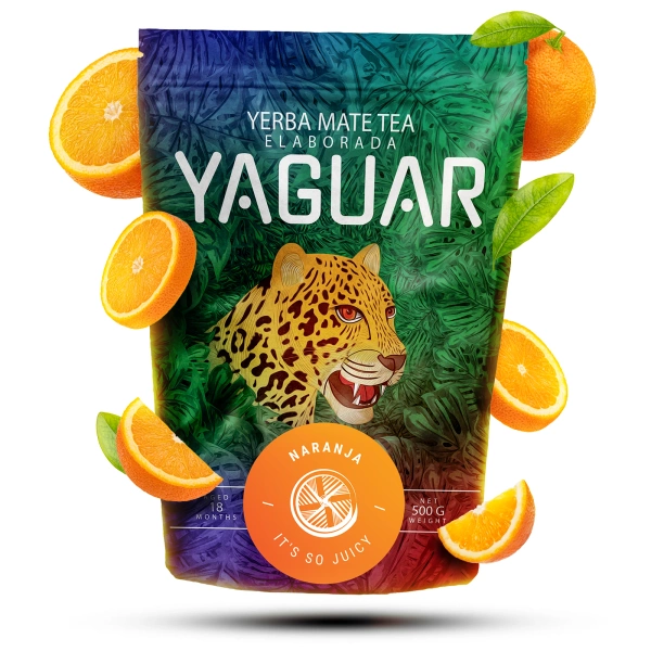 • Yaguar Naranja - μια τροπική παραλλαγή του yerba mate με αναζωογονητικό χαρακτήρα. Η ζωντανή γεύση του πορτοκαλιού αναμειγνύεται με τα φύλλα δημιουργώντας μια αρμονική και δυναμωτική σύνθεση ιδανική για καθημερινή απόλαυση!