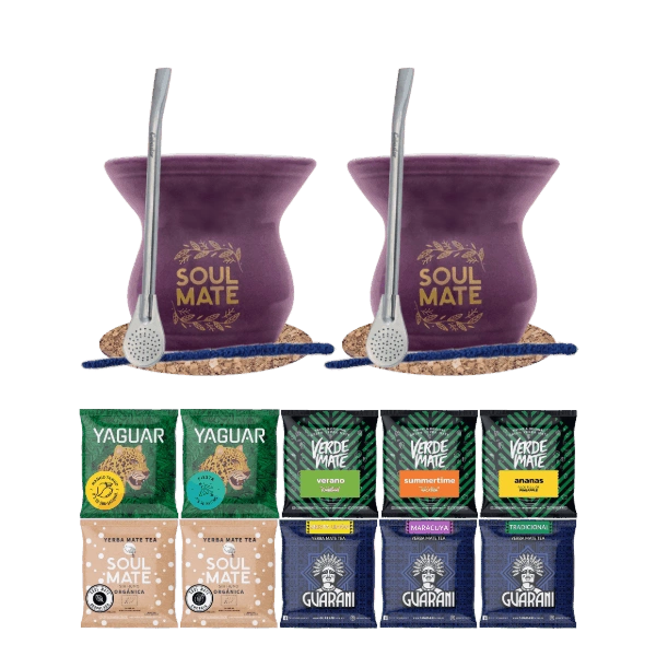 Yerba Mate Set 10x50g 2x Calabash + 2x Bombilla